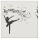 Simple black silhouette of a ballet dancer with fancy music bar and notes