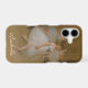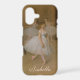 French impressionist painter Edgar Degas created this painting, “The Dancing Class” around 1870. Young ballerinas, dressed in white tutus and pale pink pointe ballet shoes, warm up and rehearse in this detail from the work. Created in muted antique shades of cream, tan, peach, and brown, the original oil on wood painting is displayed at the Metropolitan Museum of Art in New York City. You can now carry this inspiring work of art with you and personalize it with your own name or text by using the easy, provided templates.