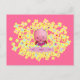 An adorable ballerina ladybug surrounded by bright stars on a postcard.