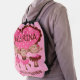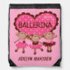 Ballerina Monkeys drawstring backpack bag, so cute, perfect for little girls who go to dance class, who love monkeys, who love to dance! Features a pink and white polka dotted heart that reads Ballerina in brown text, three adorable ballerina monkeys in brown and pink tutus and slippers, and an area you can personalize by adding her name! The background is pink but you can change it to whatever color you like!