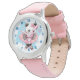 Here's a cute gift for a granddaughter, daughter, or any little girl, especially on Valentine's Day or her birthday. The easy to read watch has an adorable black and white panda bear posing in her pink tutu and ballet slippers. She holds a pink heart, and several pink heart images float around her. The image is placed on a pastel blue ragged edge rectangle. The darker blue numbers make the watch easy to read. This design looks great with several of the wrist band colors, too...check them out!