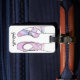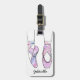 This luggage tag features classic ballerina pointe shoes in a soft pastel pink and purple watercolor design on the front. The back displays your contact information for easy identification. Cute and practical for a backpack, suitcase, or dance bag, and customizable with a name for a personal touch.