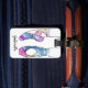 This luggage tag features classic ballerina pointe shoes in a colorful watercolor design with shades of pink and purple on the front. The back holds your contact information for easy identification. Cute and practical for a backpack, suitcase, or dance bag, and you can customize it with a name for a personal touch.