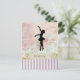 A postcard with a silhouette of a ballet dancer on a pretty background. This elegant ballet dancer is standing on her toes with her arms stretched out gracefully.