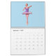 This 12 month calendar contains twelve different colorful images of ballet dancers in many different positions.