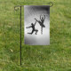 Flag bracket is super easy to assemble. There is a prong fork that goes into the ground. I dug a shallow hole to bury the prongs and still had enough height. Reinforced stitching on for the flag opening. Colors are true to the website. Mona Lisa's sign with the text is easy to read, the text is clear and not blurry.
