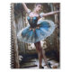 Ballet dancer in a blue tutu, in the middle of dancing.