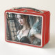 This is a standard metal lunchbox that appears to work just fine. We designed this box ourselves with an uploaded photo and custom text on the front and back. It looks absolutely beautiful except the front of the lunchbox is not centered like it shows in the photo. The print borders don't align with the inset flat part of the box where the preview photo online showed it perfectly centered in there. The back looks nice and centered though.