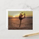 With a feeling of joy, the young ballerina dances on the beach as the sun sets. The scene makes a lovely postcard.