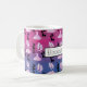 A dance themed personalized coffee mug with a ballet pattern which contains images of a tutu, ballet dress and ballet slippers in pink watercolor. Along with black silhouetted ballet shoes and ballerina all in a repeating pattern. Elegant and classy on a gradient background of pink, blue and purple colors.