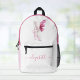 Cute custom ballet class backpack that features a watercolor of pink ballet slippers and her name in a pretty pink script with swashes. If needed, you can adjust the size of the script font in the design tool for shorter or longer names.
