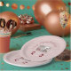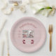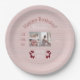 Girl's birthday themed paper plate has ballet slippers, a soft line background that comes in any color, lots of personalizable text areas and, a soft-look three template photo area to download your photos into. Mauve pink and cranberry