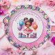 Cute little girl's birthday party paper plates. Sweet watercolor illustration of a ballerina of color in a pink tutu with pretty floral accents.