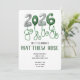 2026 graduation invitation. Classic green and white. Retro balloon letters celebrate the graduate.