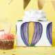 Watercolor hot air balloon with decorated Christmas tree. Custom background color.