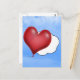 Send a quick note with this cute postcard. An illustration of a heart shaped balloon, floating through a blue sky with clouds.