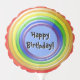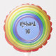 Rainbow colored circles on both sides with a pale blue center. One side holds greeting: "Happy Birthday!". The other side shows Name and Year: "Richard 16" Colored rings from pale blue center out are - purple, blue, green, yellow, orange, and red.