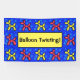 Specially designed for balloon twisters and clowns! Fun red and yellow balloon dogs on a bright blue background with whimsical swirls in teal!