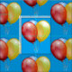 A fabric design featuring a design of a bunch of red blue and yellow balloons against a customisable sky blue backgound. Perfect for girls / kids clothing. Cute whimsical vintage design.