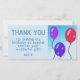 Balloons Kids Birthday Thank you Message Card. Thank you birthday card for children`s birthday party. This design comes with balloons in red, blue and purple colors on a blue background. Thank your family and friends. Personalize the card with your name and thank you message.