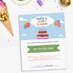 A colorful party & events planner flyer decorated with a birthday cake, some clouds on a blue sky and colorful balloons. Suitable for event organizers who are responsible for organizing a variety of events, including birthday parties for both children and adults, product launches, baby showers, family celebrations, wedding anniversaries, bachelor parties, and theme parties.