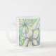 This stunningly luminous & graceful cup is a tsunami of taste. Guzzle. Improves the bang! of your hot chocolate or iced tea. Gulp. Translucent, vibrant b’fly needs to fly into your kitchen, pronto. Swig. Be~YOU~tiful-est butterfly on the planet. Kaleidoscopic, delicate & prismatic b’fly is inviting [Invite pals over] & decorates your desk or table. Ooh-la-la. Application of design is perfect~~no chipped wings! Onelinetees also makes T-shirts & hats.
