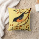 Decorative animal lover pillows with stylized bird art of Baltimore Oriole and swirl pattern with two tone color leaf pattern