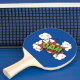 BAM Pop Art ping pong paddle in red and green on a blue background. Fun addition to the game room!