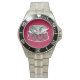 Has heft and feel of expensive stainless steel quartz watches. Good band with safety catch. I removed links, which is easy because engraved arrows show direction to push the linking pins. As always by this seller, the image (a railroad logo) is a perfect reproduction of my emailed image, and is precisely spaced and aligned.