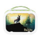 My sister is a school principal at an arts magnet school, 4-8. She requested a lunchbox for her birthday, something the kids would admire, and something "Lisa Frank." This is a big ask. I spent A LOT of time desperately looking everywhere on the internet for something that would not scream "uncool" because let us face it, kids today are not into Lisa Frank. Found Zazzle, discovered I could personalize this, and found a Lisa Frank style "Mona Lisa" with dolphins leaping and a pierced eyebrow = Saved!