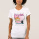 The material is a great quality that is hard to find with most tee shirts. Fabric was not see-through or thin at all, but was also very soft and comfortable. The shirt description states that it runs a little small, so I sized up one size for a perfect fit! I would definitely buy this type of tee shirt again because I love the fit and high quality fabric that I cannot find anywhere else. The printing was perfect and just as pictured. Loved the cute quote and really enjoy the tee in both the quality and design. I love quirky typography designs and funny quotes and I am extremely pleased with the overall quality and value I get at Zazzle!