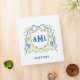 This chic design features a Bamboo Crest with a navy blue bow surrounded by olive tree topiaries in chinoiserie pots. You can personalize with your monogram and subject name.
