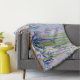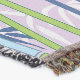 A quality printed throw has its advantages. This is a much finer weave throw than its loopier cousins, and though lighter, it is worth the investment for custom room accessorizing. The back is much prettier than the typical brown, and the fringe on the long sides very vivid, the selvage nicely done. Before photographing, I washed the throw in cold water, delicate, with a thicker woven throw the same size. On tumble dry low, this throw was dry in half the time as the other. This is a very practical quality if you use throws for furniture covers or to wrap up in frequently. The sleekness of the fabric makes it a great layer for accenting or protecting without the feeling of sitting on too much stuff. Perfect for napping or when you feel a light chill coming on. The color printing is beautiful and on this fabric, matched the design and color of my Photoshop image. This is an advantage for blending room fabrics and colors. The fringe on the short sides prints the colors from the design image and therefore varies from the side fringe. I streaked a white fractal line through the plaid pattern to give the illusion of weaving. This printed as crisp as an illusory thread, and put some white in the short side fringe, showing another advantage of print vs loomed- for artistic purposes, line lines, detail, and color integrity can be planned and preserved. My loomed throws have color limitations and more of a needlepoint texture. Print throws reproduce an exact image. The throw felt a little stiff straight out of the package, but this went away in the first delicate wash. Of course I searched the wash water for ink or bleeding and there was none.