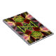 The original pattern by HomeWare on this Notebook was created from an original photograph of a banana flower. The photo has been repeated to form this tropical pattern. The colors are straight from nature, with an intricate background of yellow green, unripe bananas and the rich, dark reddish brown of the flower petals, called bracts, curving around in front. Beneath every layer lies an orderly row of little yellow-tipped fronds. These are the buds that eventually become bananas. The petals are a lighter, dusty pink color as the layers unfold toward the heart of the flower.