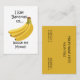 Banana Fruit Boost My Mood Funny Business Card originally designed by Nisha Prabhu. Fully Customizable. Personalize with your details. Add a splash of humor and personality to your professional branding with this fun and memorable business card. Featuring cheerful banana graphics and the playful phrase "Boost My Mood," this card is perfect for entrepreneurs, health and wellness professionals, or anyone who wants to leave a positive, lighthearted impression. Stand out from the crowd and make networking a little sweeter with this unique and amusing design!