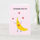 This chic minimal style love theme Valentine wedding anniversary greeting card features a lovely cute kawaii style yellow banana fruit and custom romantic love message of I am bananas about you on a romantic pink background is a nice choice for sending your loving greeting message for your special one for valentine's day, wedding anniversary, proposal, engagement, etc. Custom the text as you wish to make it personal.