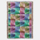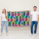 The original pattern on this Throw Blanket was made from original photographs by ZoeSPEAK of banana leaves on a tree in the garden. The photos are closeups, showing the ribbed patterns of the leaves as they curve around each other in the sunlight. The photos have been tinted with a variety of muted colors, sheer greens, blues, browns and purples. The seams where the photos meet have slightly wavy edges, as if stitched together like a quilt.