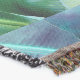 A quality printed throw has its advantages. This is a much finer weave throw than its loopier cousins, and though lighter, it is worth the investment for custom room accessorizing. The back is much prettier than the typical brown, and the fringe on the long sides very vivid, the selvage nicely done. Before photographing, I washed the throw in cold water, delicate, with a thicker woven throw the same size. On tumble dry low, this throw was dry in half the time as the other. This is a very practical quality if you use throws for furniture covers or to wrap up in frequently. The sleekness of the fabric makes it a great layer for accenting or protecting without the feeling of sitting on too much stuff. Perfect for napping or when you feel a light chill coming on. The color printing is beautiful and on this fabric, matched the design and color of my Photoshop image. This is an advantage for blending room fabrics and colors. The fringe on the short sides prints the colors from the design image and therefore varies from the side fringe. I streaked a white fractal line through the plaid pattern to give the illusion of weaving. This printed as crisp as an illusory thread, and put some white in the short side fringe, showing another advantage of print vs loomed- for artistic purposes, line lines, detail, and color integrity can be planned and preserved. My loomed throws have color limitations and more of a needlepoint texture. Print throws reproduce an exact image. The throw felt a little stiff straight out of the package, but this went away in the first delicate wash. Of course I searched the wash water for ink or bleeding and there was none.