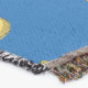 A quality printed throw has its advantages. This is a much finer weave throw than its loopier cousins, and though lighter, it is worth the investment for custom room accessorizing. The back is much prettier than the typical brown, and the fringe on the long sides very vivid, the selvage nicely done. Before photographing, I washed the throw in cold water, delicate, with a thicker woven throw the same size. On tumble dry low, this throw was dry in half the time as the other. This is a very practical quality if you use throws for furniture covers or to wrap up in frequently. The sleekness of the fabric makes it a great layer for accenting or protecting without the feeling of sitting on too much stuff. Perfect for napping or when you feel a light chill coming on. The color printing is beautiful and on this fabric, matched the design and color of my Photoshop image. This is an advantage for blending room fabrics and colors. The fringe on the short sides prints the colors from the design image and therefore varies from the side fringe. I streaked a white fractal line through the plaid pattern to give the illusion of weaving. This printed as crisp as an illusory thread, and put some white in the short side fringe, showing another advantage of print vs loomed- for artistic purposes, line lines, detail, and color integrity can be planned and preserved. My loomed throws have color limitations and more of a needlepoint texture. Print throws reproduce an exact image. The throw felt a little stiff straight out of the package, but this went away in the first delicate wash. Of course I searched the wash water for ink or bleeding and there was none.