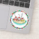 Hand drawn cartoon ice cream sundae with chocolate, strawberries, pineapple, cherries and whipped cream party stickers.
