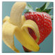 A fun tile with a yummy banana and a delicious juicy strawberry.
