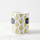 Are you bananas about coffee? A mug featuring the caption "BANANAS ABOUT COFFEE" over a lively pattern of stylized pixel art yellow bananas on a clean white background.