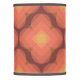 It was quick delivery, sooner than expected. This lampshade is exactly as described and the perfect size for my lamp. I replaced the old bell shape lampshade with this barrel shape and it allows me to place my lamp closer to the wall. I love the soft colors of this lamp shade and the modern-southwest design. In the evening, the light is a cream color. I am very happy with this lampshade and highly recommend this product. (Pardon the quality of my photos for this review.)
