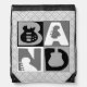 Monochromatic blocks spelling the word band in musical text is a unique design for musicians, music teachers and students in band and marching band at back to school, birthdays, holidays and graduation.