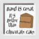 Band is great, it's better than chocolate cake text with the image of a slice of cake is a funny gift design for music directors and musicians and marching band members.