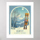 Poster from a wonderful ski resort holiday in the beautiful mountains of Banff Sunshine Valley Alberta Canada. This small poster features an arch with a stunning blue-grey mountain landscape and retro ski boards in an orange tribal pattern in the foreground. The design is a lovely combination of retro and modern, and I hope you enjoy it!