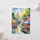 This postcard features a watercolor portrait of the floating markets in Bangkok, Thailand.