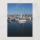 Bangor marina, Northern Ireland. Vertical format, white yacht, calm water, reflections.