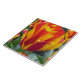 A close up photograph of a colorful Banja Luka tulip printed on a ceramic tile.