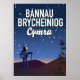 Bannau Brycheiniog Cymru travel poster of a hiker on a mountain.